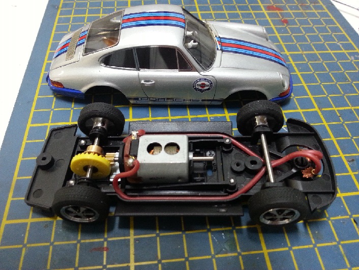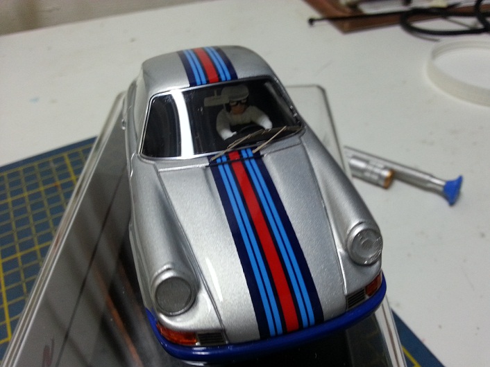 - au passage, je vais également réduire le dessous de la partie arrière de l'habitacle qui frotte un peu sur les roues arrières. Je ferai ça doucemement à la Dremel, l'histoire d'enlever progressivement la matière.