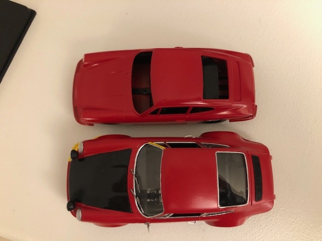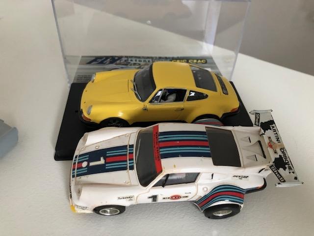 Louise a écrit :en écartant la largeur du train arrière de la scalex les dimensions générales sont pratiquement identique avec la FLY. bon j'ai commencé le montage d'un 911 ARII...comparatif à suivre..A +Dart1973, en plus la Porsche Scalextric en photo c'est une Gr5 qui en vrai était déjà beaucoup plus large que modèle de la Fly jaune