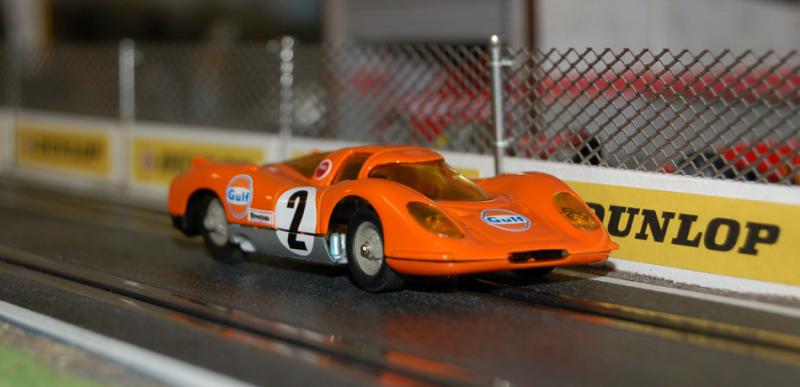 Terminée dernièrement, je voulais partager avec vous les images de ma dernière réalisation sur la base d’une – terriblement misérable – épave de Porsche 917 Jouef à l’échelle 1/40. Très abimée, presque littéralement recouverte de Patex et souffrant de nombreux manques dont les clapets arrières, j’ai toutefois préféré la restaurer que la laisser périr dans son jus. Voilà tous les détails de cette petite transformation qui, au final, me plaît plutôt pas mal d’autant que son comportement en piste est vraiment agréable.