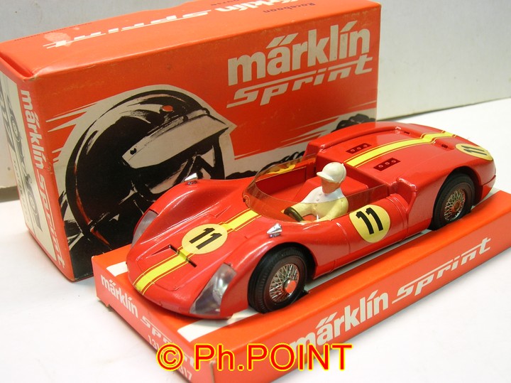 Il y a 2 versions chez Marklin. Le coupé classique ainsi que la version spyder qui n'a existé qu'à un seul exemplaire et qui courru en Canam en 66. L'originale est grise-alu.