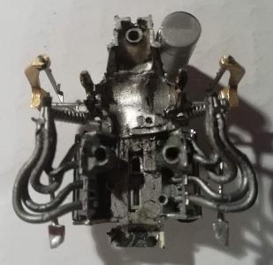 L'idée est de conserver le cosworth d'origine bien détaillé. Une fois la F1 démontée cela s'avère possible d'y glisser le support Policar. J'y ajoute 2 puits de vis latéraux similaires à ceux des F1 Policar.