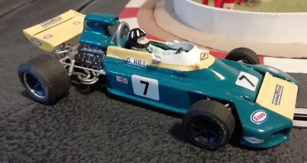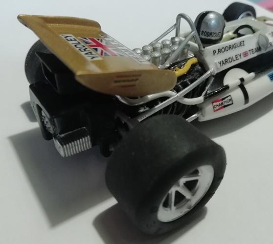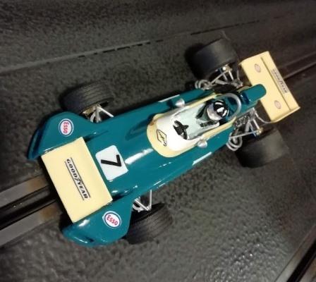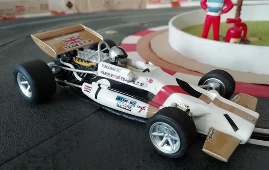 Cette BRM P153 saison 1970, vue également en 71 et 72 (notamment aux mains du charmant Helmut Marko actuellement père fouettard chez Red Bull F1) était mon "fantasme" de F1 Slot.