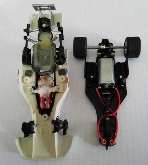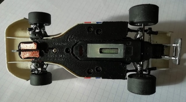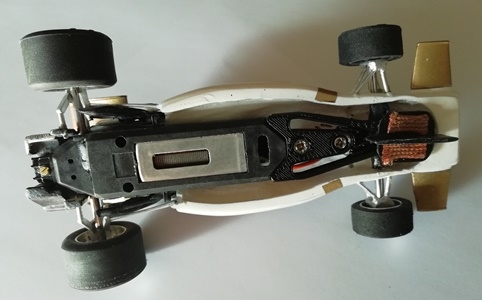 LaurentSlotCar a, pour la 1ère fois sur un de ses kits, envisagé un support moteur Policar pour la partie mécanique de son kit. Cette F1 peut alors rivaliser en performance sur une piste avec des F1 Policar qu'il faudra cependant lester sur la carrosserie.