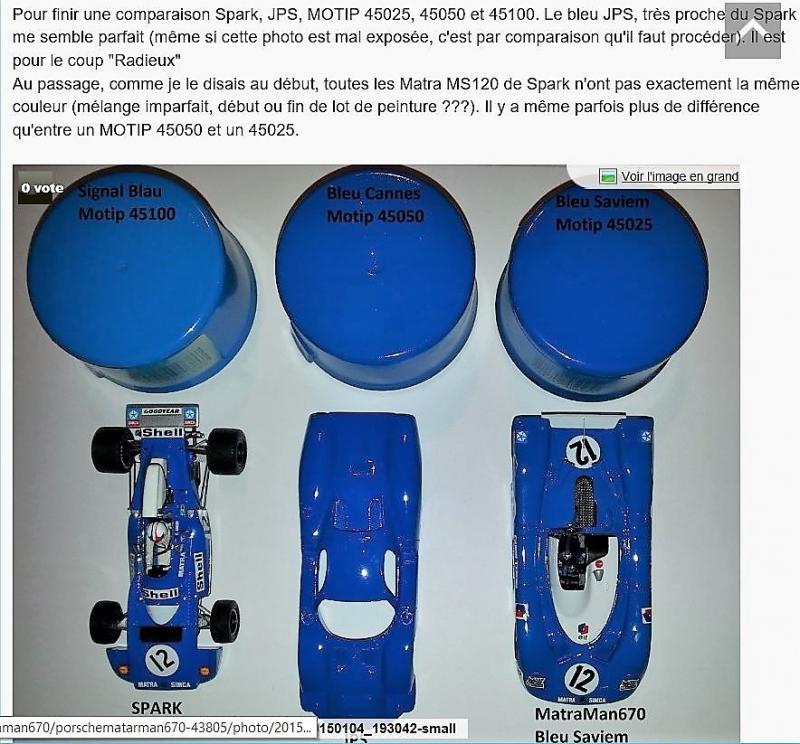 C'est la peinture bleue Motip qui était introuvable et avec le confinement... Elle a fini par arriver. Pour trouver ce fameux bleu Matra F1 en Motip, je me suis inspiré des conseils d'un internaute: