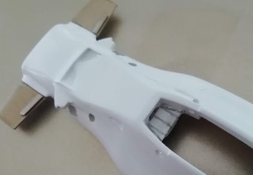 C'est effectivement une auto plutôt lourde face à ses concurrentes et les Policar en particulier. Le poids du kit d'origine entièrement monté et peint est autour de 20 g contre 10-11g à une Policar. Je vais gagner 2 g mais pas plus sous peine de fragiliser l'auto.
