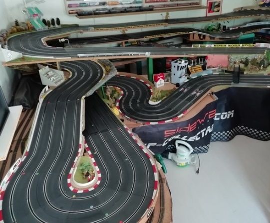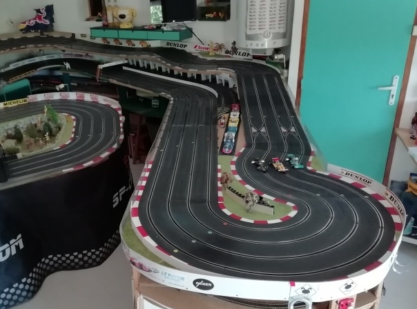 Autre point commun nous avons tous les 2 une piste Polistil. La mienne à 80% car j'y ai ajouté des courbes Ninco et je l'ai digitalisée Oxigen avec des aiguillages Ninco