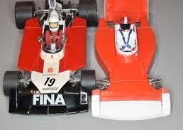 Sur cette photo il s'agit d'une version "évoluée" qui est apparue en milieu de saison 74 (probablement au GP de GB). La partie supérieure des pontons est devenue arrondie vers l'avant ( anguleux sur la 1ère version).Puis le bouclier avant est devenu plein et terminé les entrées d'air qu'il y a sur le modèle Matchbox bouclier qui était alors noir et non pas rouge.