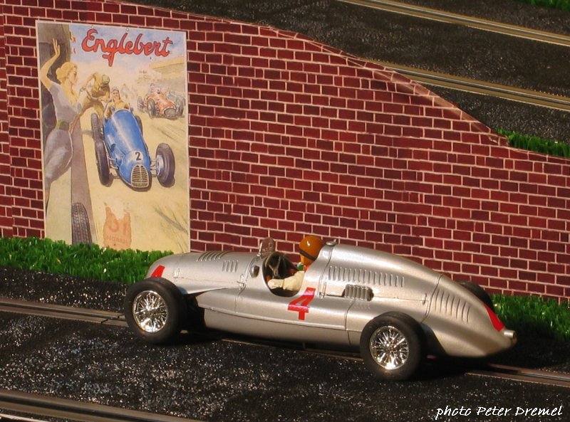 Perso au départ , j'ai rattrapé le diamêtre des roues en utilisant des roues de ...camions Fly retaillés , ce qui donne optiquement parlant un bon volume réaliste à ce type de voitures . Le tout recollé sur les jantes Ninco ou Cartrix plastique, un peu retouchées à la peinture .