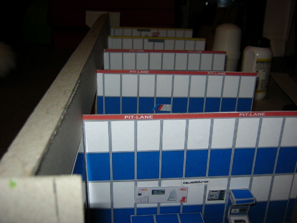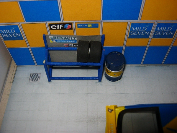 sortire des tuyaux continué les criques etc .....ajouté des pneus dans les casiers a pneus repeindres des figurines a l'image des pilotes que je ne trouve pas en photos