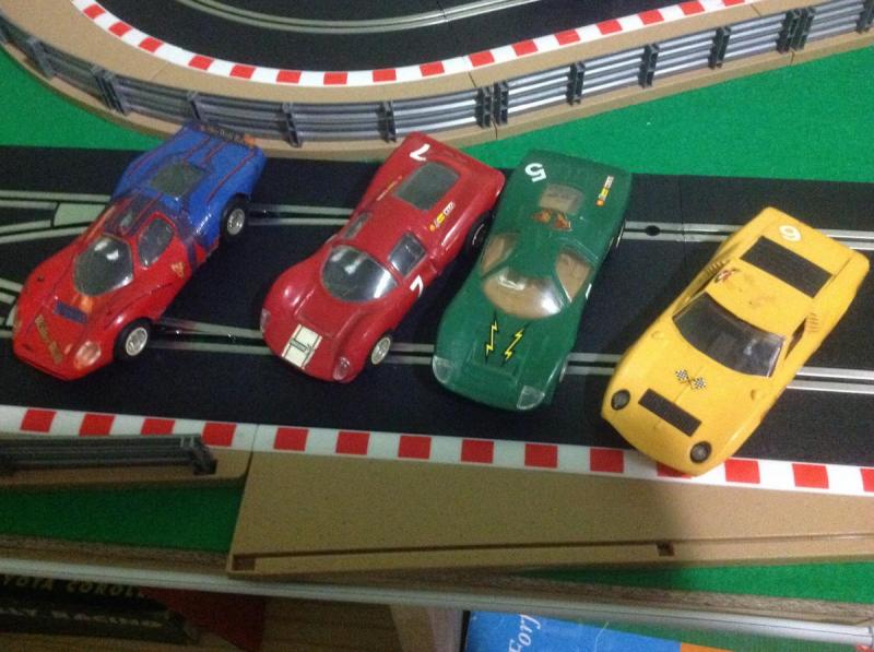 ...Scalextric, sur les 4 la Miura n a plus de châssis, la mirage et la P4 n ont plus de guide mais la Ford P68 en a un.
