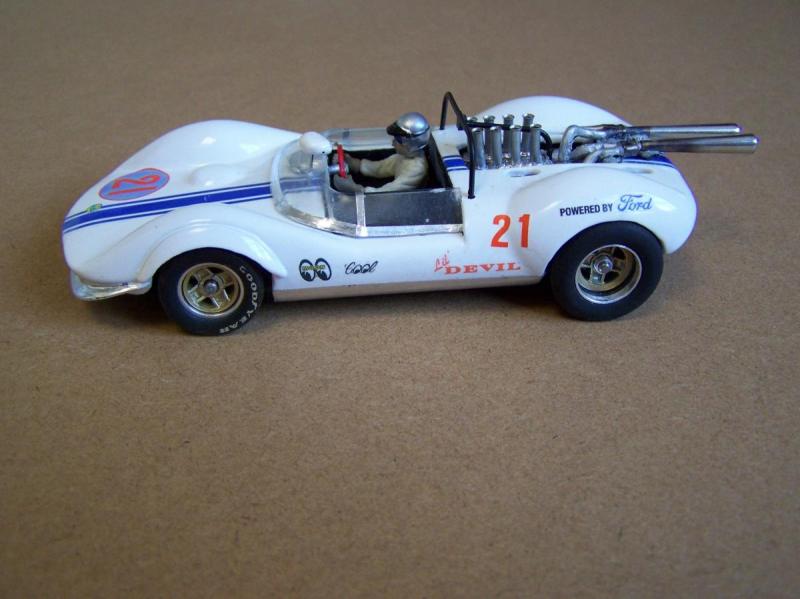 Je viens de rentrer une deuxième version de la Ford J, avec les ailes avant allongées, une deuxième Lola MKVI, vu que j'ai transformé la première en Mecom et que donc, il me faillait une version d'origine.