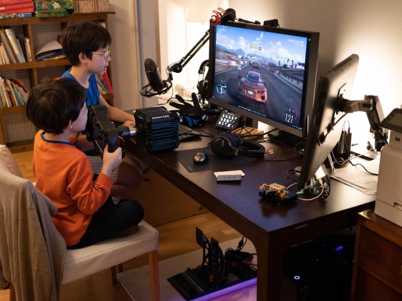 Là, mes deux fils s'éclatent avec Forza 5. De mon côté, je m'initie à Assetto Corsa Competizione, rFacrtor 2 et F1 2021.
