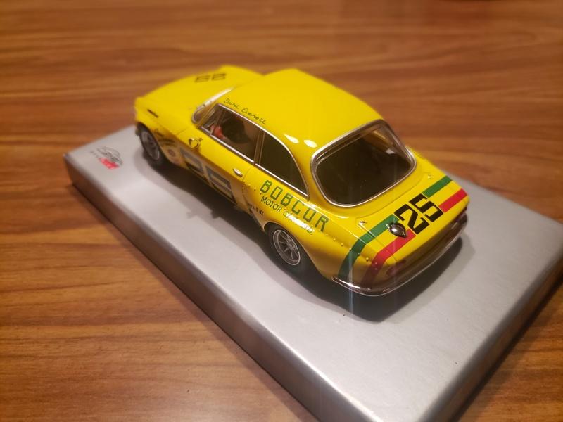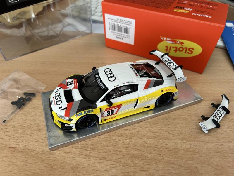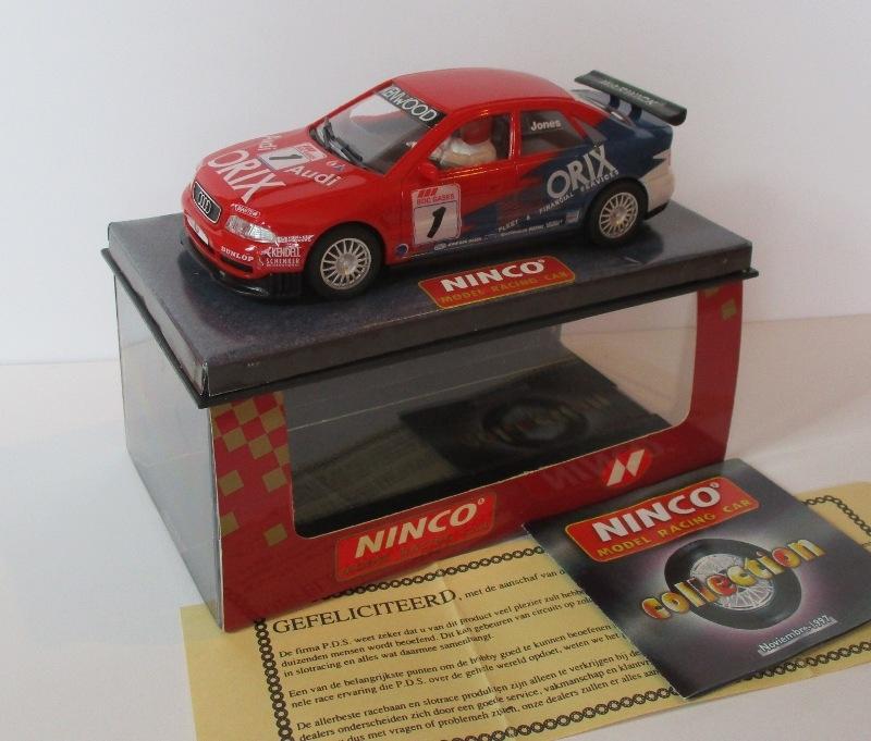 Et hier en passant dans mon shop préféré ici dans ma ville, j'ai trouvée cette Audi A4 Ninco (réf : 50158) dans une caisse de voitures d'occasion mises en vente par un particulier. Elle est neuve, dans un format de boîte que je préférais aux grosses qu'ils ont utilisé par la suite. Pour dire qu'elle est neuve, comme vous pouvez le voir sur la photo, il y avait encore sous le socle un petit catalogue et un papier de recommandation.