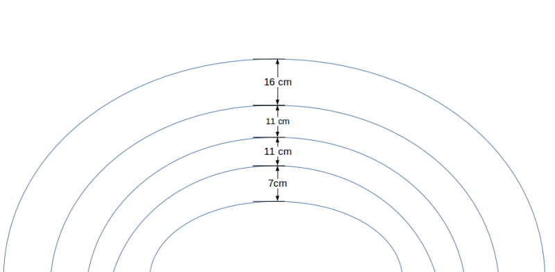 Pour les lignes droites on retombe à 36 cm (7 + 11 + 11 + 7)