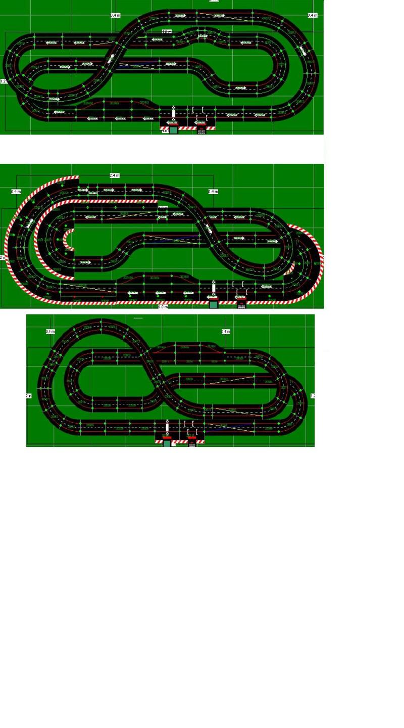 Oui tu as raison après vérification impossible de rentrer à gauche dans le pitlane; du coup voici 3 tracés qui semble convenir à mon plateau, rails à dispo. et autres.