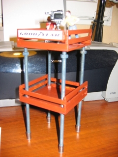 . Je compte cacher les écrous situés sous la dernière plate-forme. Je pensais imiter une toile à rayures rouges et blanches, un peu comme celles des stands de Spa dans les années 70. Qu'en pensez-vous et avez-vous d'autres idées ?