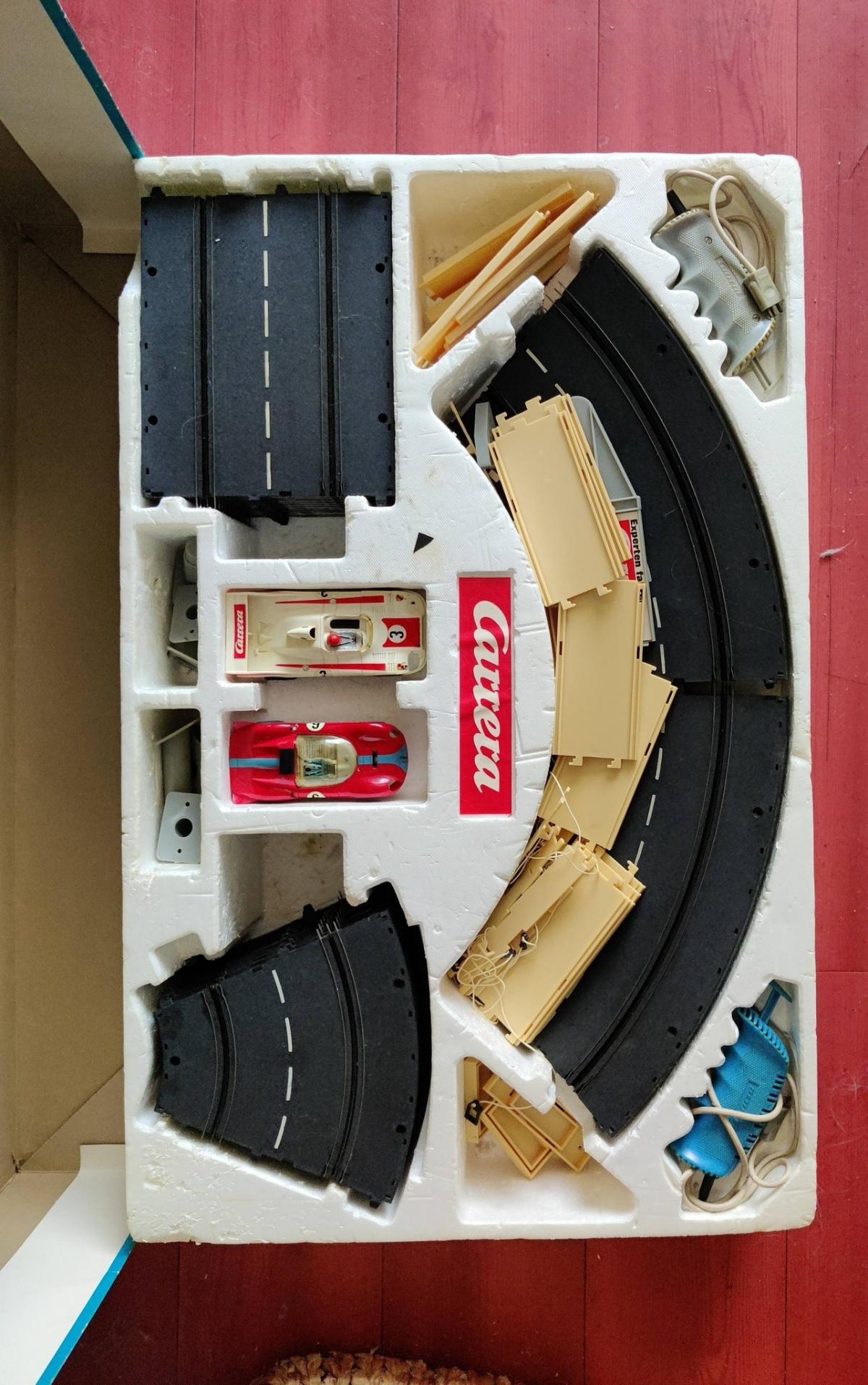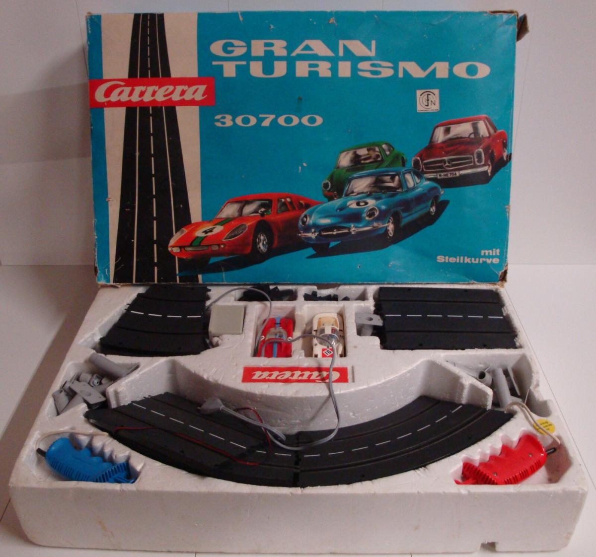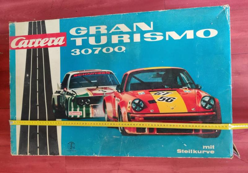 La boîte du kit de base est la référence CARRERA GRAN TURISMO 30700. Il y a ensuite pleins de portions de piste, des courbes, des lignes droite, des ponts, un compte tour etc etc etc.