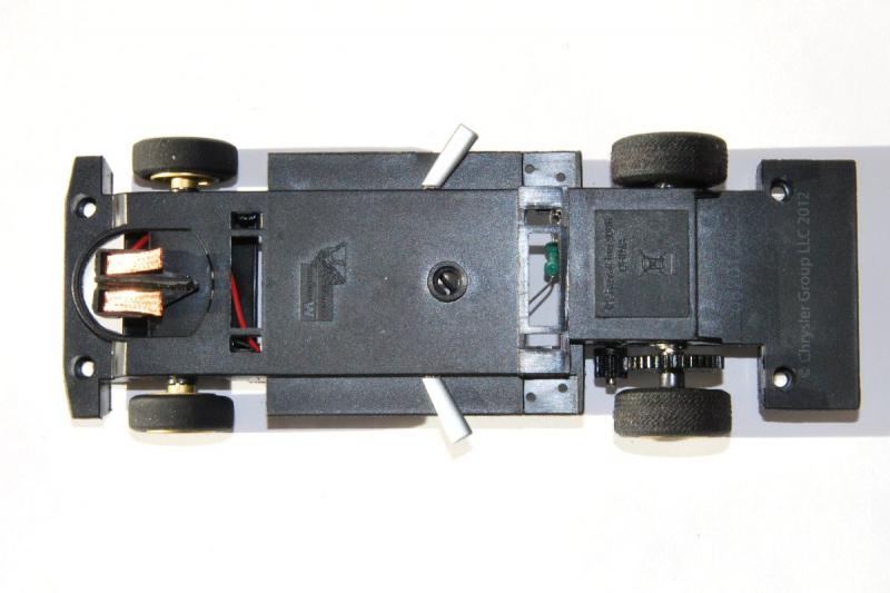 A noter la présence d'une plaque vissée recouvrant le guide et l'axe des roues AV dont je n'ai pas bien compris l'utilité.