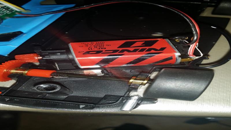 Le plus simple est de démonter l'axe AR (déclipser les bagues laiton de l'axe du châssis) et de tester le moteur "à vide".