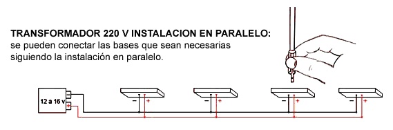 Si transfo 1A, tu peux chainer 10 ampoules de consommation 0.1A...