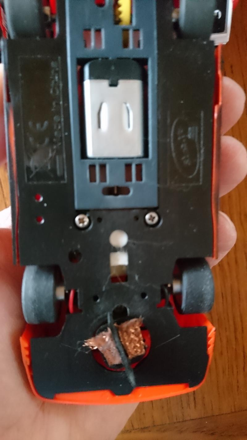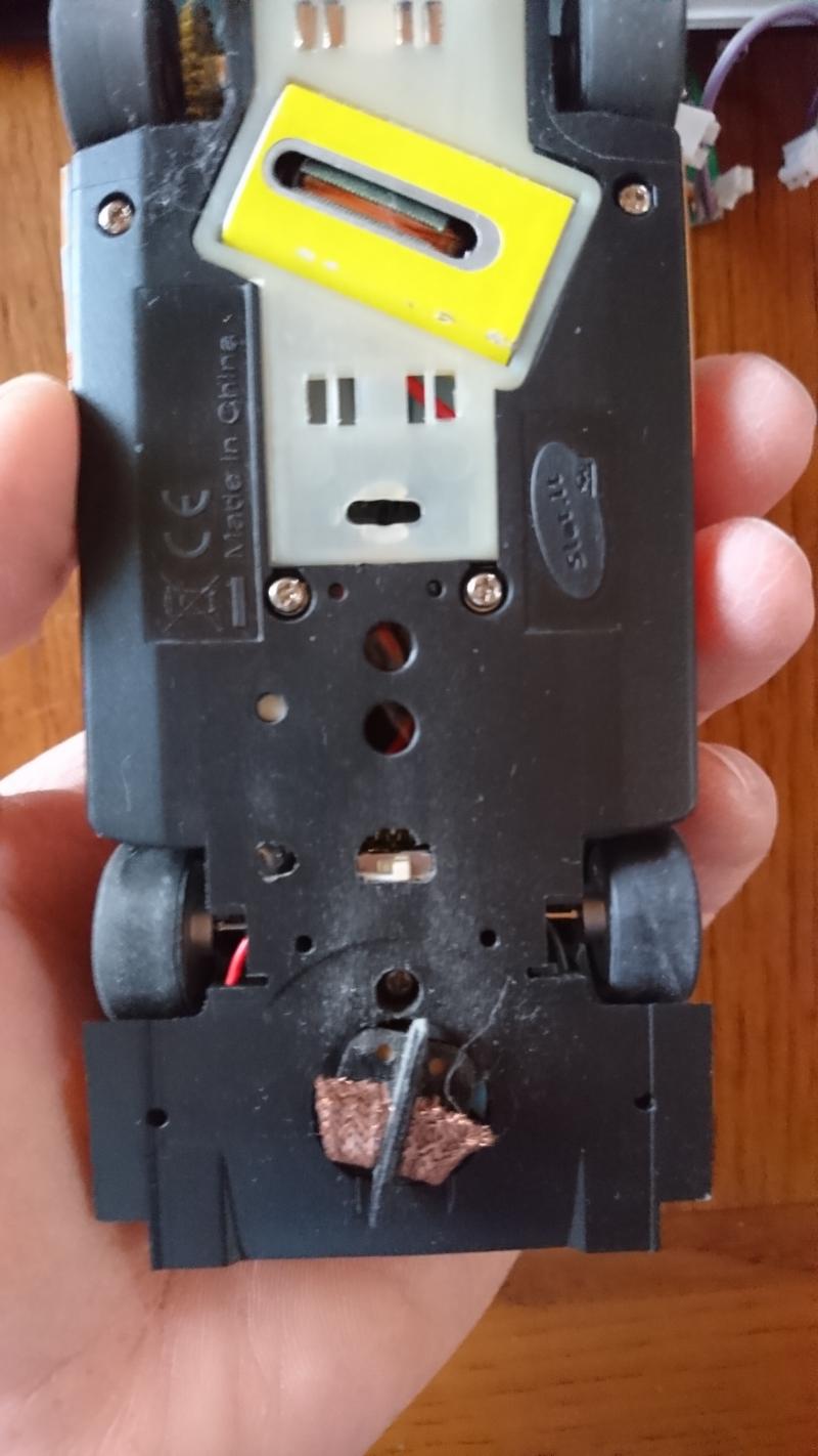 Lola Aston Martin, maintenant, je ne coupe plus le chassis, en plus, sur la puce, je coupe l'ergo de changement de mode, cela me permet d'utiliser le trou du châssis déjà présent sans le retoucher, le tout sans que cela touche le support moteur à l’intérieur.