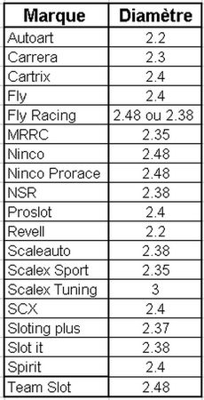 Bonjour pat28, voici un tableau de corespondance des axes. Tu devrais trouver ca dans les sites des boutiques specialiser.