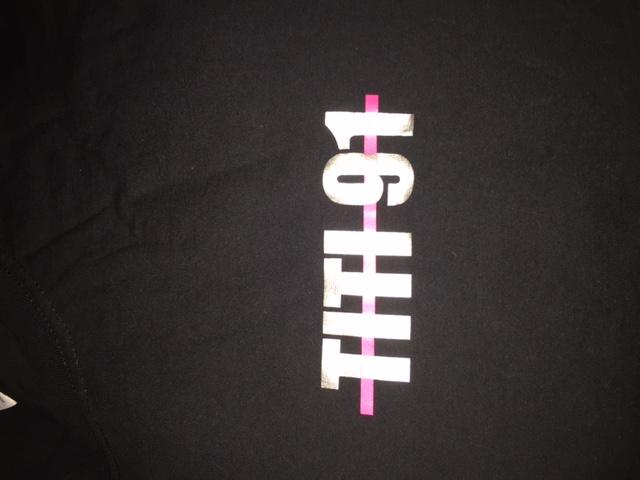 En théorie j’aurais un t shirt noir avec titi 91 écrit sur la poitrine en chrome et rose fluo