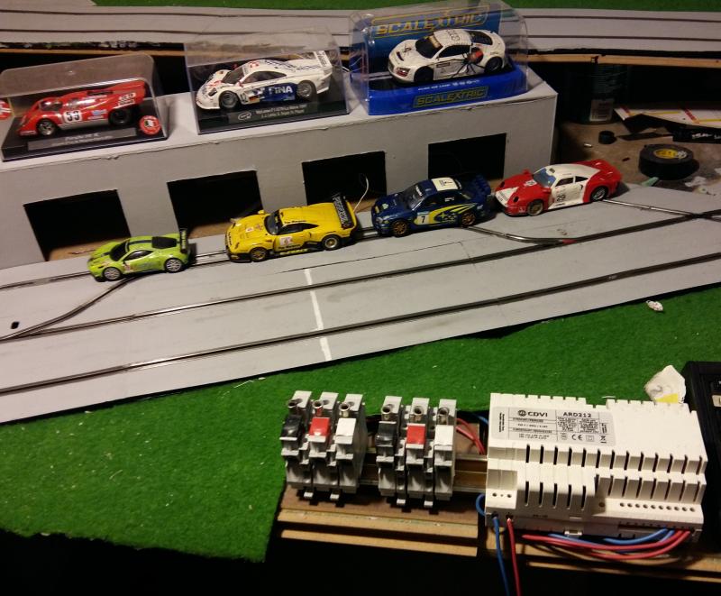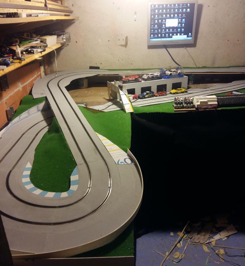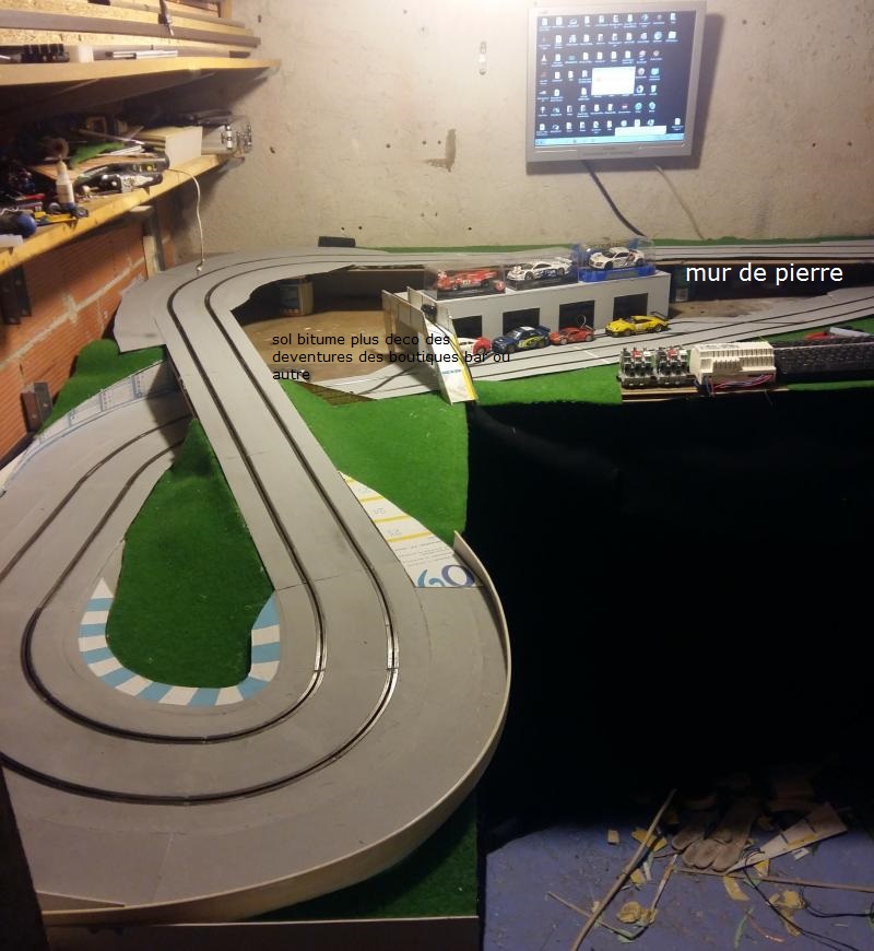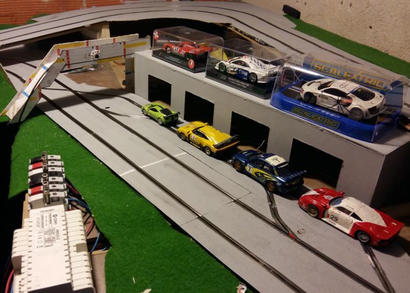 La partie des stand avec mon poste de pilotage provisoire et quelques autos. Les trois en boite sont mes persos.