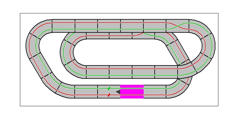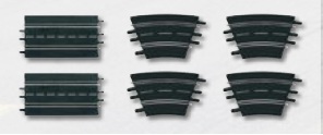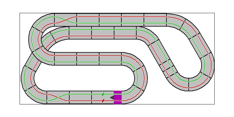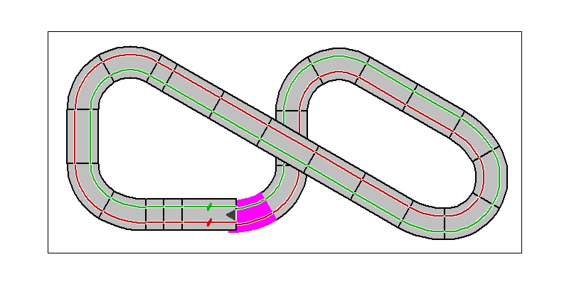 Donc, j ai pour le moment le circuit carrera de "base" en 8, composé de 8 virages 1/60°, de 7 droites et d' 1 rail d alimentation.