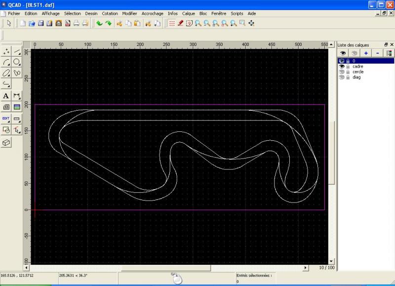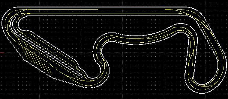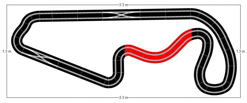 Par contre si rien n'est encore démarré ou figé, j'ai juste une petite remarque concernant le dessin. Evidemment on ne peut que s'approcher assez fidèlement du tracé réel vu l'espace et surtout pour que le plaisir de piloter soit présent, mais tu pourrais adoucir le passage entre la boucle et les esses avant la ligne d'arrivée.