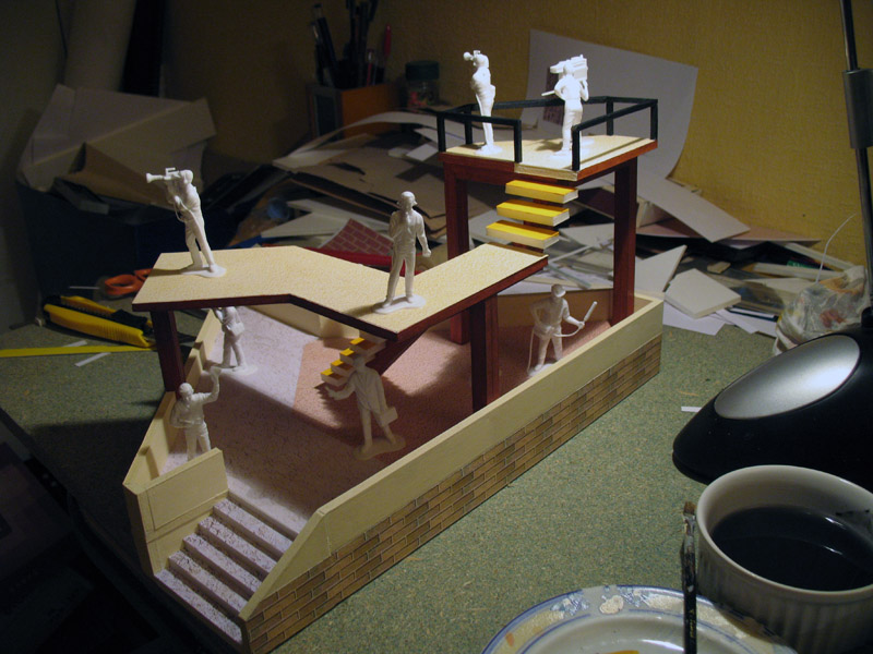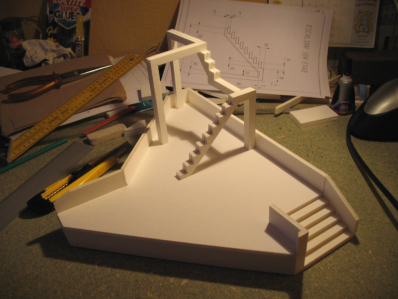 avant de coller les niveaux sur le plancher il faut que je fasse la déco. au sol et murets, ainsi que les planchers sup.