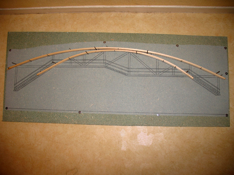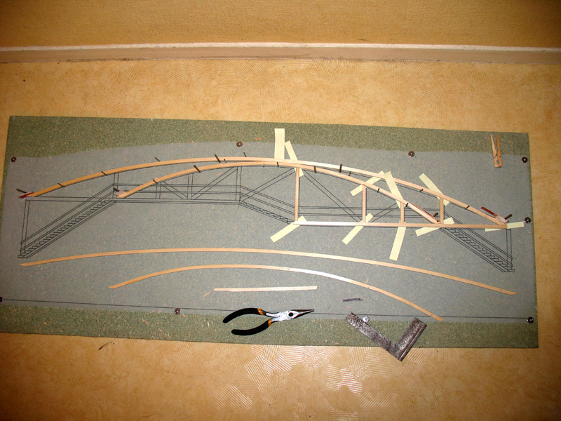 petite info : le cintrage des bouts de bois....trempés toute une après midi dans l'eau...ça marche impec. mais 2 remarques: les clous de petit diamêtre font une légère empreinte dans le bois qui est bien trempé et puis prévoir une longueur plus grande car après séchage, ça rétréci... 12mm pour 1m..