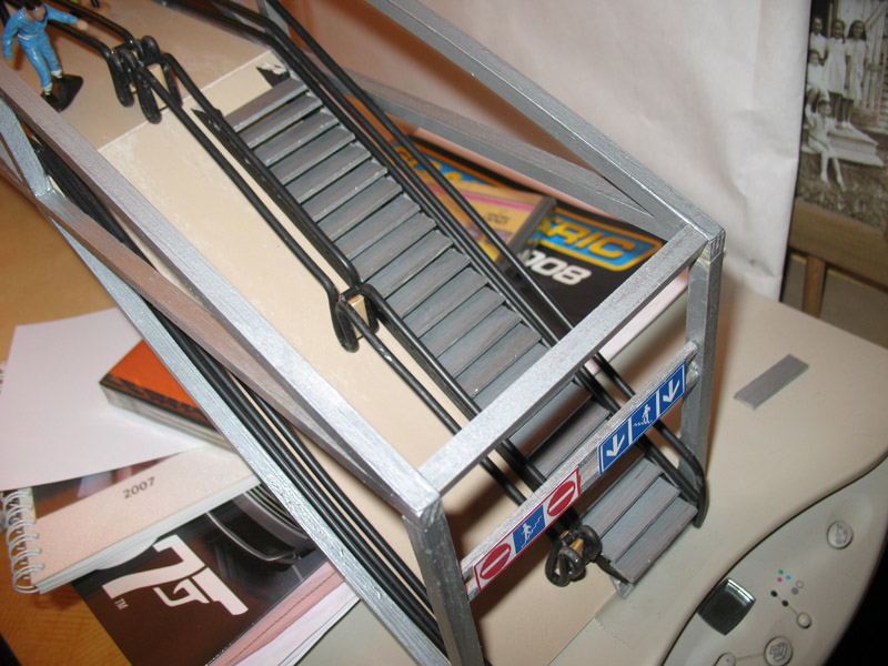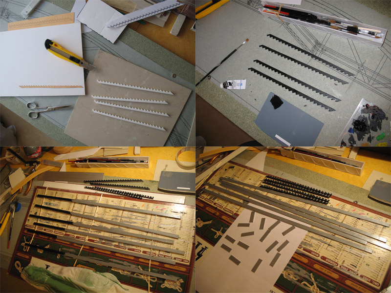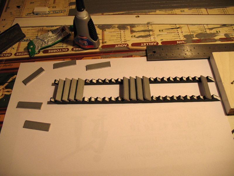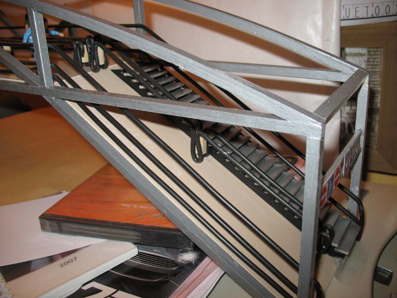 ) mise en peinture.... découpe bandes dans "calendars" avec sous couche noire et finintion alu....découpe des marches et début assemblage......