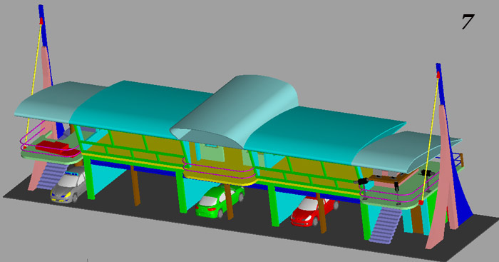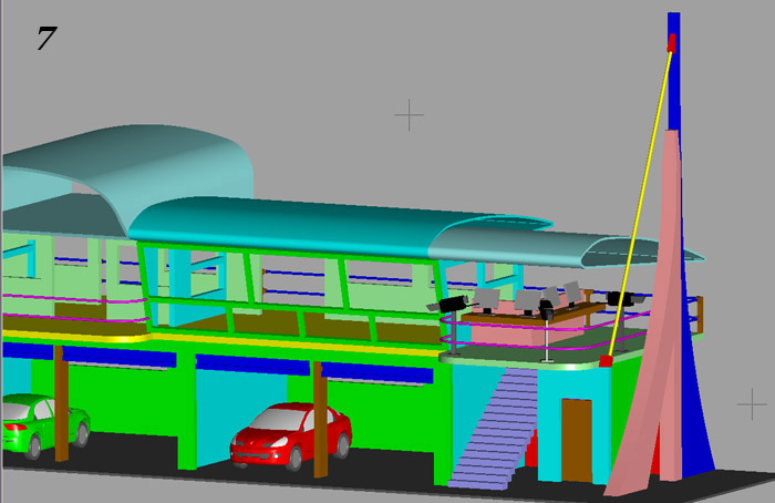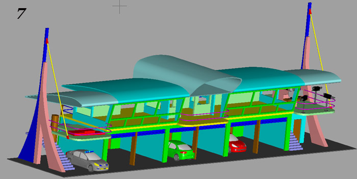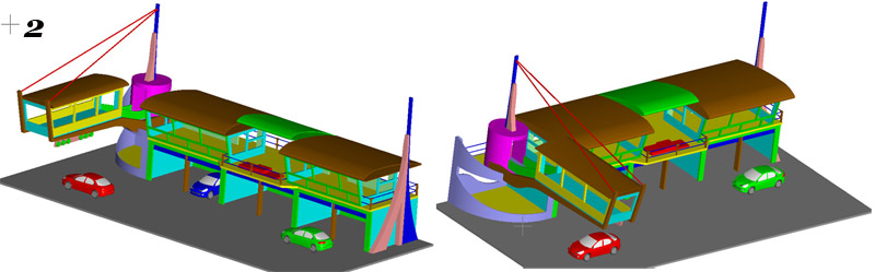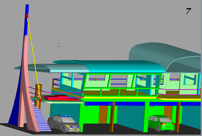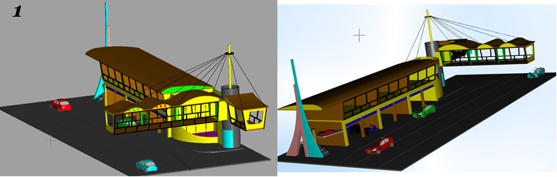 par contre la version avec podium à droite, flèche de structures à chaques extrémités et toit en aile d'avion......................