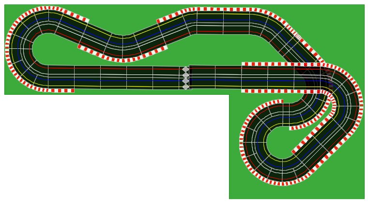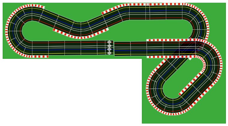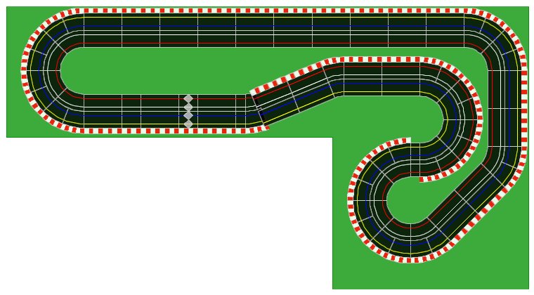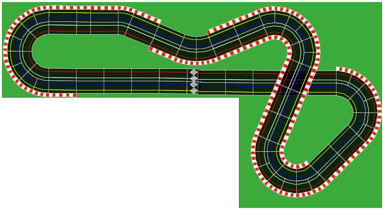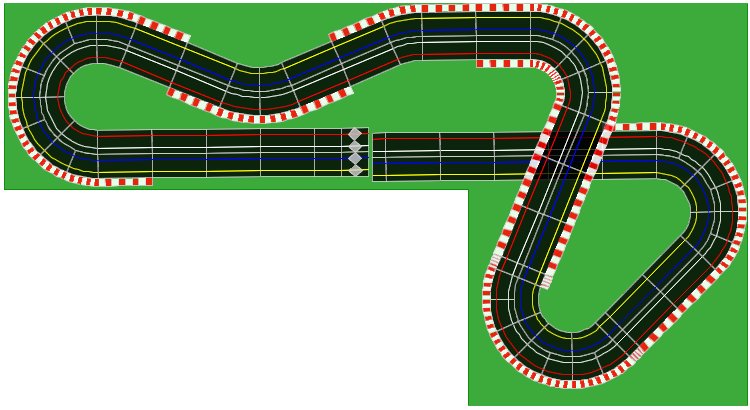 Pour mémoire, voilà le circuit actuel (longueur des pistes : environ 12,10 m à 13,60 m) :