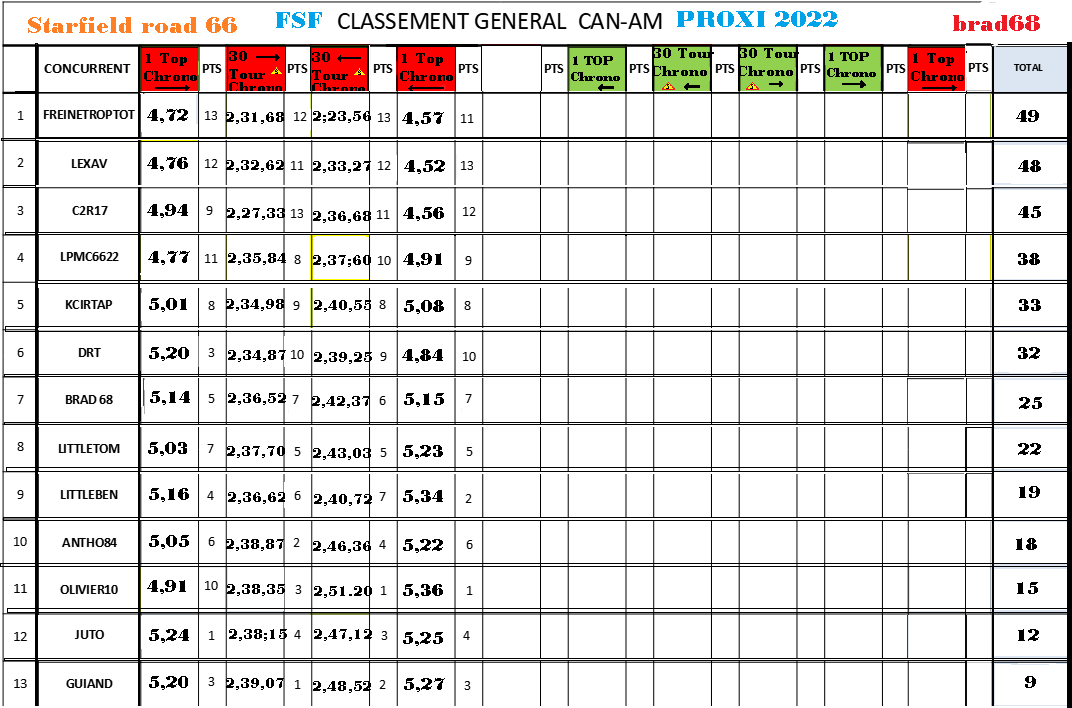 Merci Brad pour ces nouveaux résultats, ces jolies photos et ce classement!