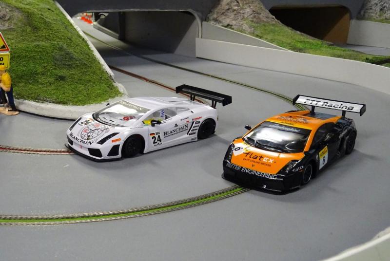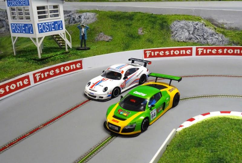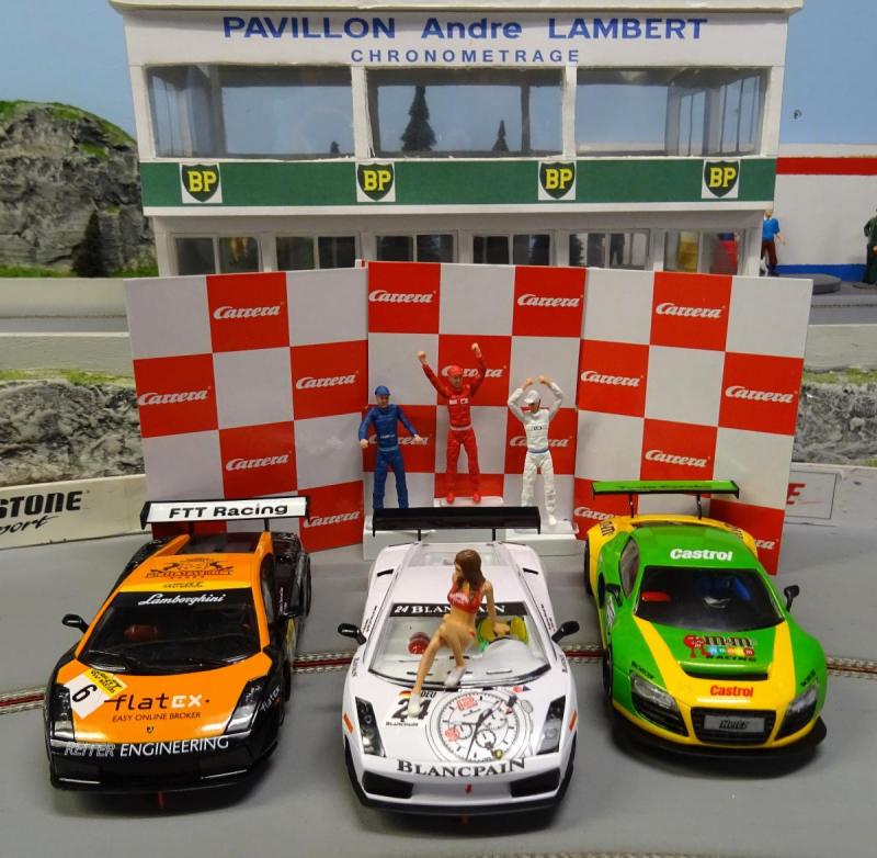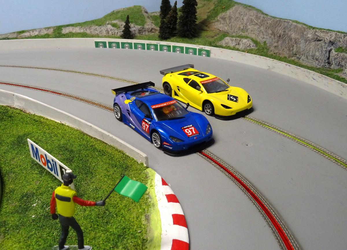 ,,pas mal pour une vieille Ninco ! ) , les autres n'ont pas démérité non plus avec des performances étonnantes pour des autos à la base plus jouet que chasseuses de chrono ,,et j'ai pris beaucoup de plaisir à les faire rouler ,,mes coups de coeur de cette année vont à la Corvette de Hakaa pour la qualité de sa déco et sa douceur de pilotage , à la petite Porsche 996 de Dart73 pour le fun procuré à dompter sa vivacité et à la Gallardo de Pascal qui aligne douceur de pilotage et efficacité redoutable !