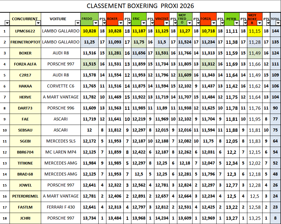 Voilà pour cette première étape de la proxi 2026 sur le Boxering , vos voitures sont maintenant dans les mains de Peter pour en découdre sur le Ninco du Rata qui va sûrement bouleverser le classement avec son grip supérieur et l'effet magnétique du moteur ,