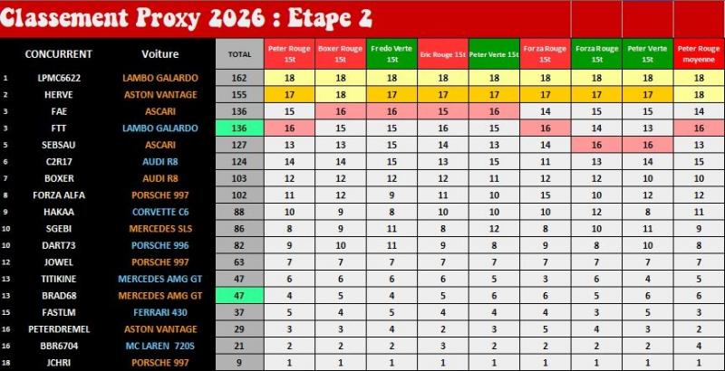 ce soir correction du classement pour les ex-aequo et publication du classement général après les deux premières étapes