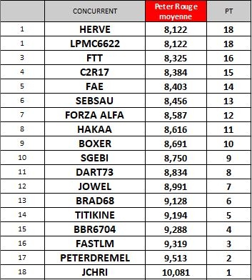 le classement de l'épreuve de régularité sur 5 tours