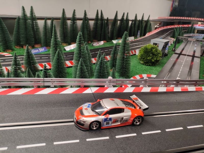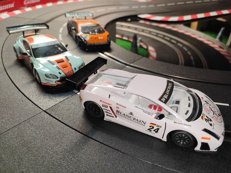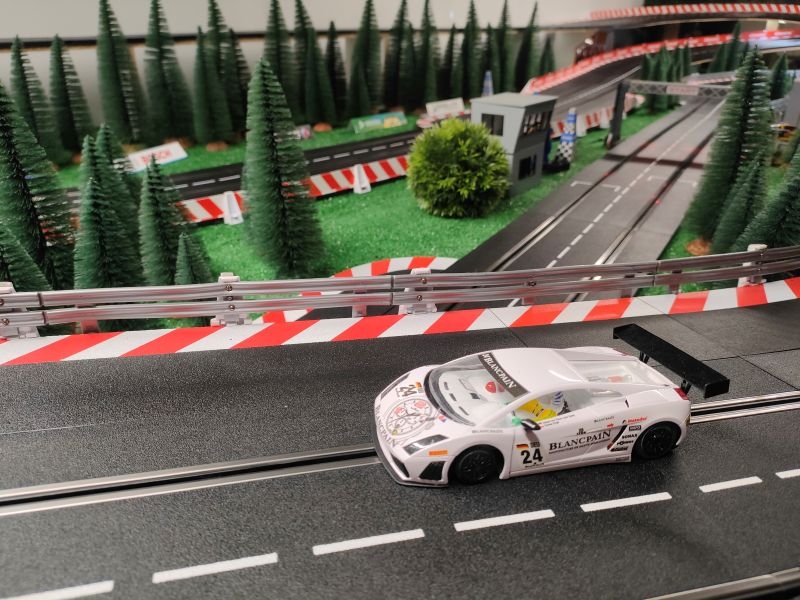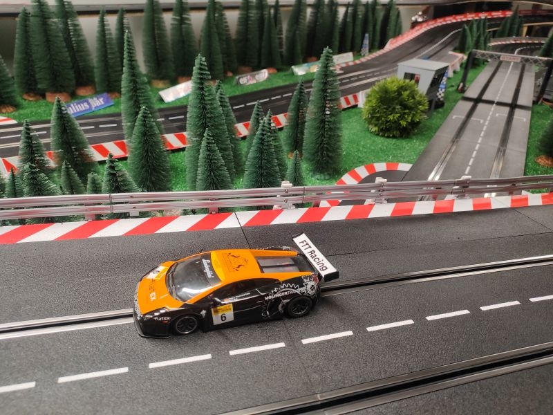 Finalement après un passage chez le garagiste, la 2nde Lambo se présente au départ avec qq doutes mais aussi de l'ambition. Facile, rapide en courbe et en ligne droite, elle s'avère être une sérieuse concurrente au podium !! Le Chrono l'atteste très vite avec un 3ème temps sans forcer !! Le mécano a fait des miracles !! Le pilote est ravi…Vivement la suite !!