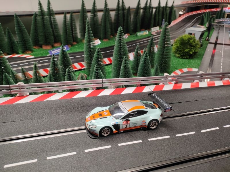 Dernier à passer, le pilote de l'Aston se dit qu'il va avoir une piste bien gommée pour ses débuts. Le train avant à l'extrême limite du sol, le moteur coupleux et vigoureux procure un réel plaisir à la conduite. Pas si loin de la 1ère place, la lutte sera serrée dans les prochaines manches…Rdv est pris !!