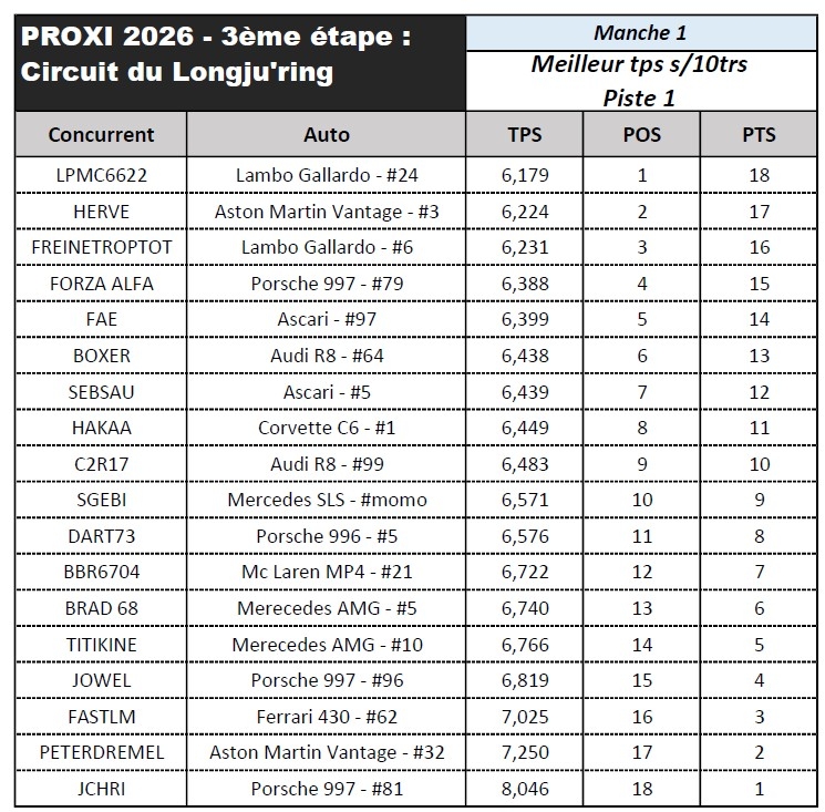 1ERE MANCHE : Meilleur Chrono sur 10 tours
