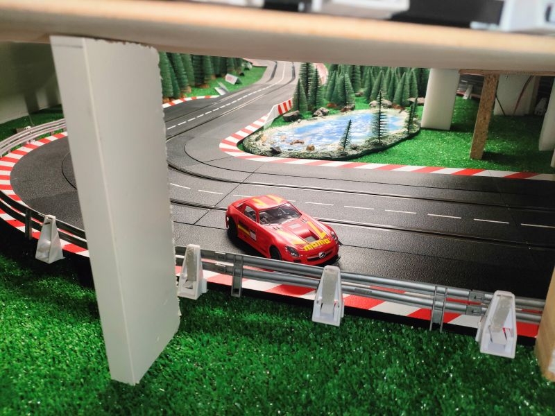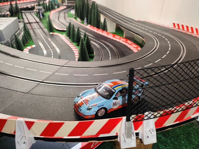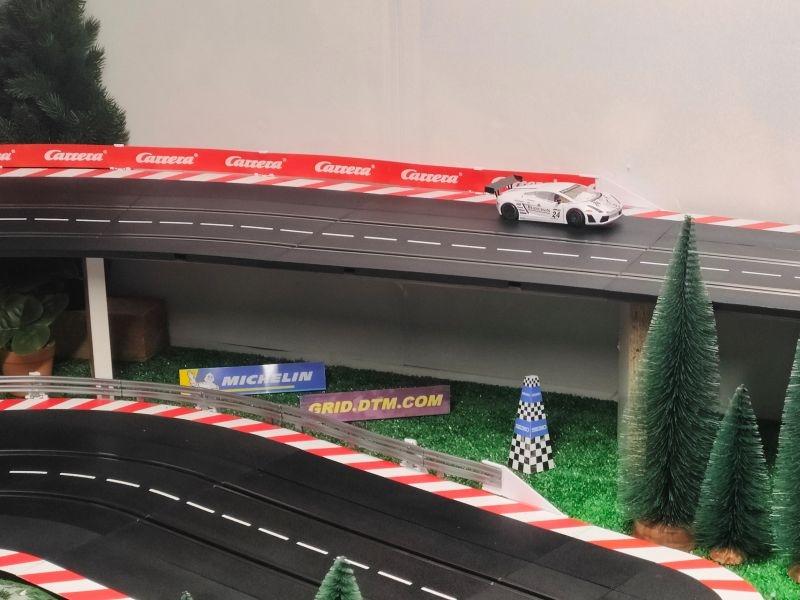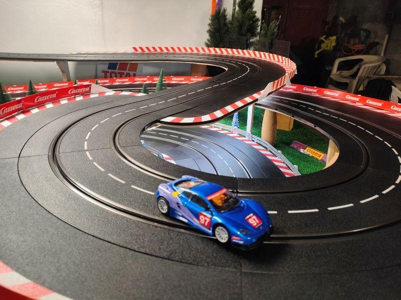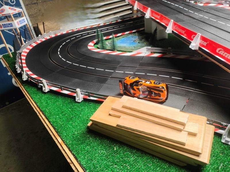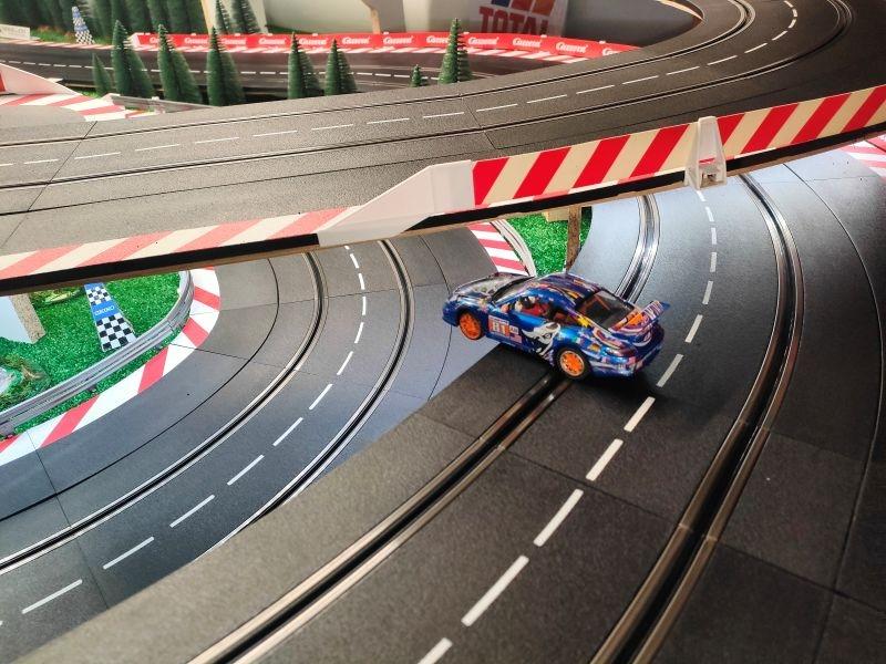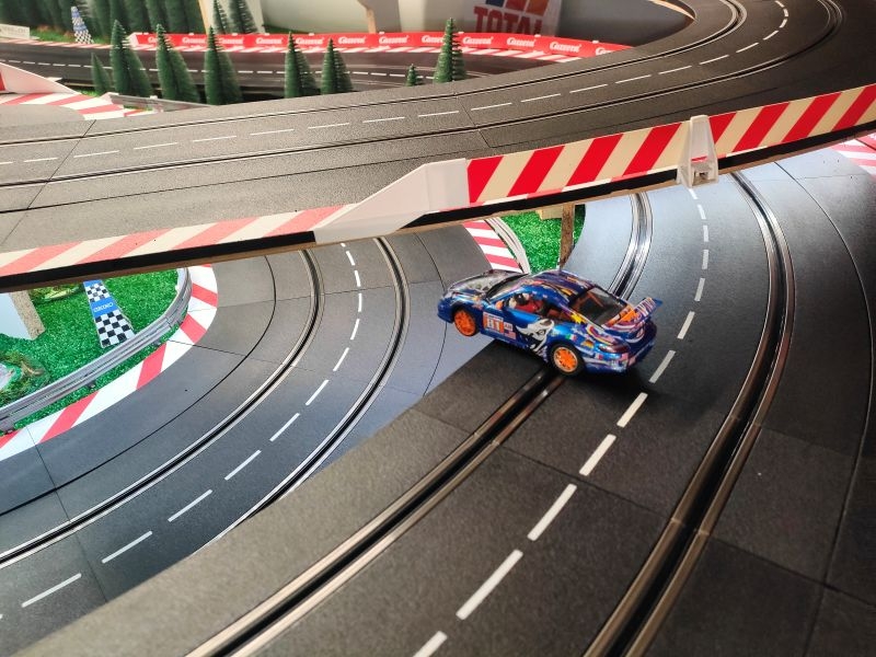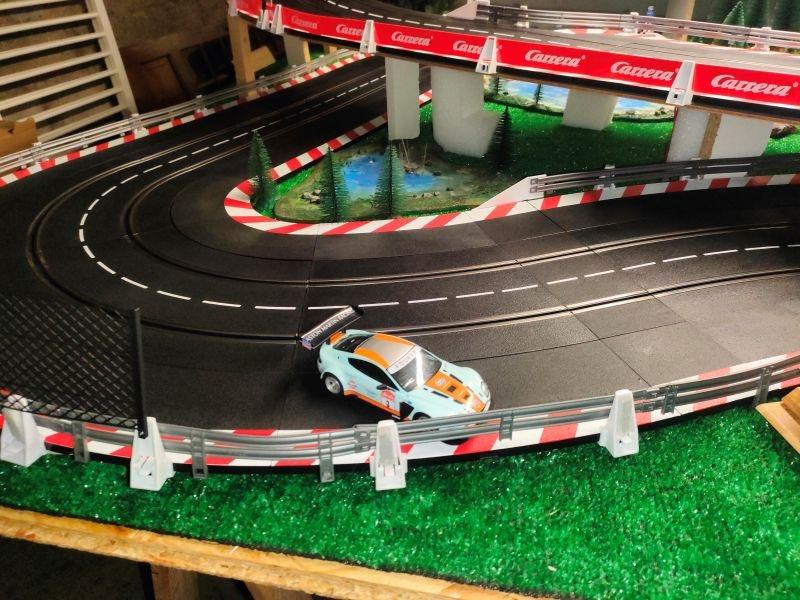 Après une sortie de piste en sortie du virage 2 que j'avais à juste titre présenté comme LE virage du circuit la voiture est partie en travers, a tapé le rail à l'AR droit et est partie en tonneau pour finir sa chute à l'étage du dessous.