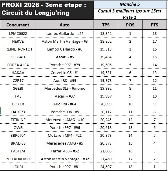 Pour cette 5ème manche, les pilotes ayant maintenant une bonne idée du tracé, il est temps se se frotter à un autre aspect du sport auto...La régularité.