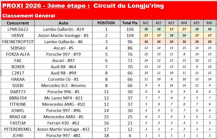 C'est en tout cas très serré autour de moi, ça met du suspens, en espérant que je finisse devant BRAD, TITI et DRAT (mais devant les 3, c'est pas gagné)!