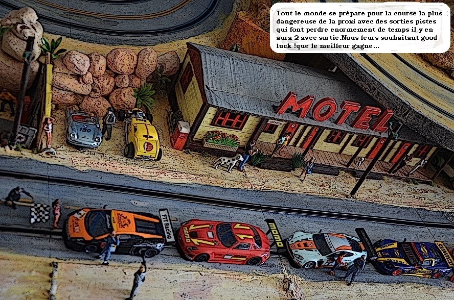Demain commence l'endurance "Le course contre la mort"en 4 manche dont 2 avec sortie de route comptabilisé sur 20 tours pour une montée du canyon voie rouge tout ça en BD !
