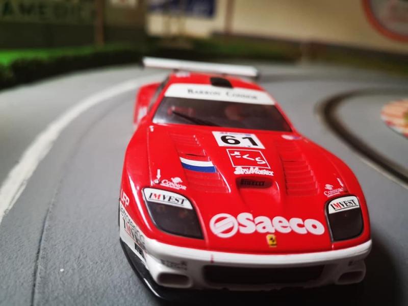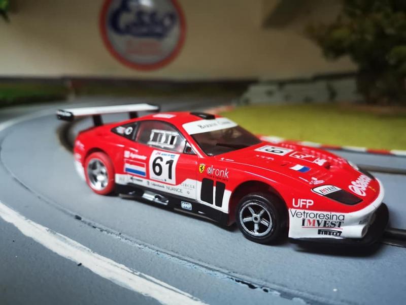 En deuxio, j'ai monté mais pour l'instant pas testé, une Ferrari 575 GTC Carrera. Là ca vous fait moins sourire, hein? C'est couillu comme choix. Bon, je dis pas que je l'engagerai mais je la teste. Elle est vidée, intérieur maison à base de carte en plastique et chassis 3D. Je voulais lui mettre un flat6 mais je n'en ai pas....