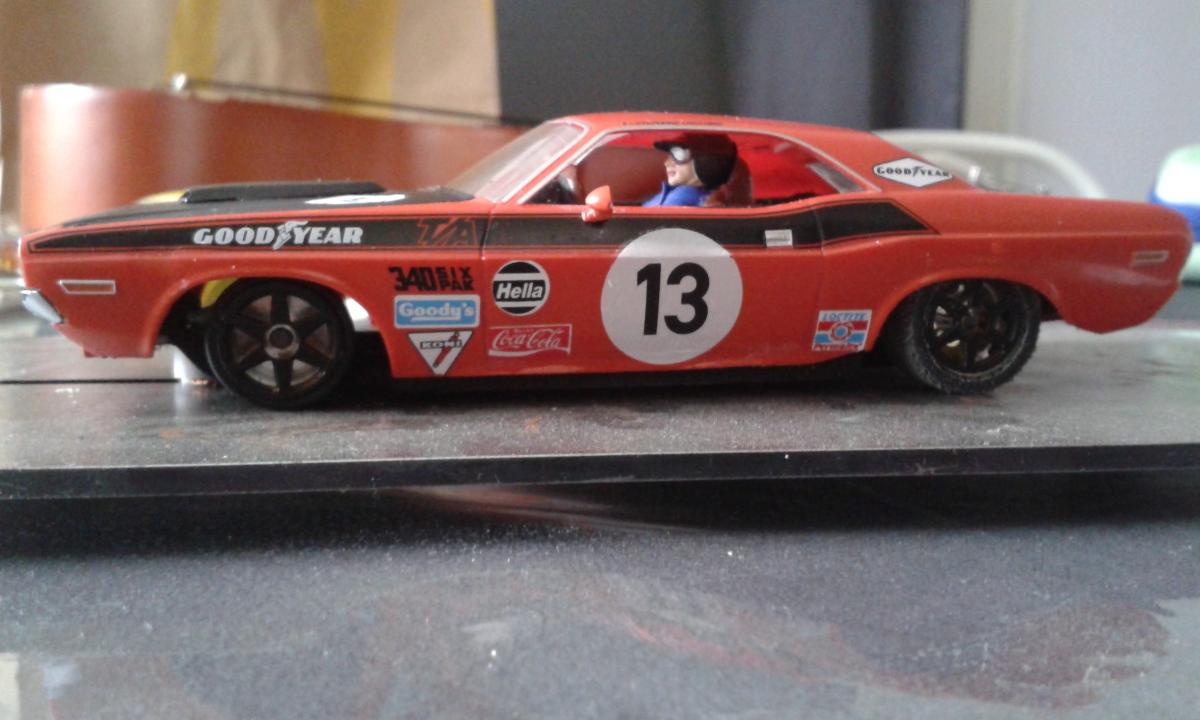 Et elle l'est, mais c'est un travail d'équipe, je ne suis pas tout seul à avoir bossé dessus. Comme je repars de très loin niveau slot de compète, n'ayant pas pratiqué depuis onze ans ; J'ai glané des conseil de ci de là, j'ai investi dans une quantité énorme de matériel à tester : 4 Mustangs, + 6 Châssis + 76 Moteurs différents + deux type de jantes avant et trois arrière + huit guides différents pour trouver celui qui n'avait pas de jeu. plus 6 paires de pneus avant et douze de pneus arrière dans différentes marque dureté et taille. Pas moins de 9 couronnes de transmission, et 6 pignons différents. Quatre configurations de châssis différentes : Sidewinder d'origine, puis surbaissé, puis inline puis bi-motor puis angle winder. Environ 12 heures de passé sur la voiture en atelier et plus encore en séance d'essais.