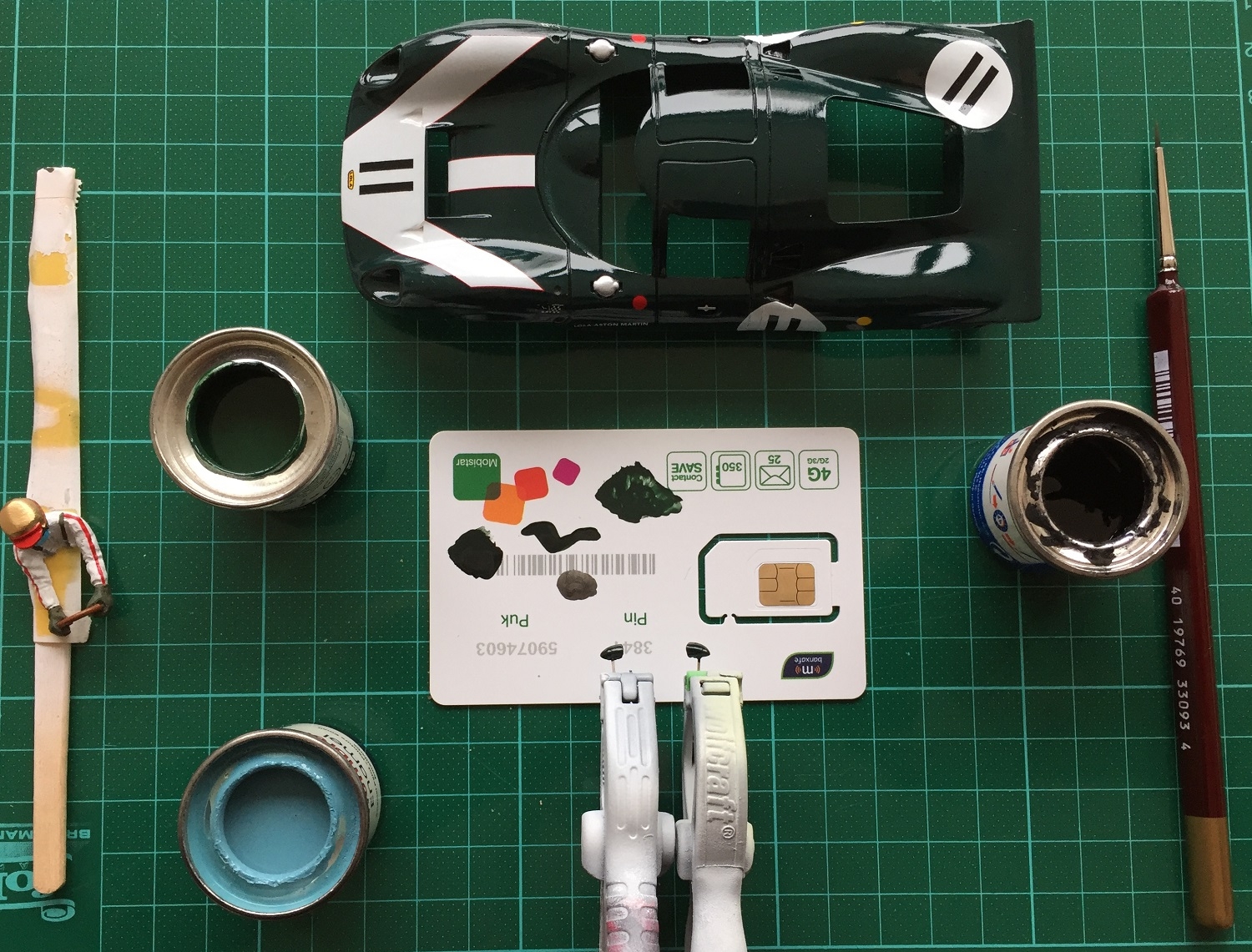 Le kit est pré-peint (la carrosserie uniquement), le pilote, sa plaque, les inserts et… les rétros sont à peindre.